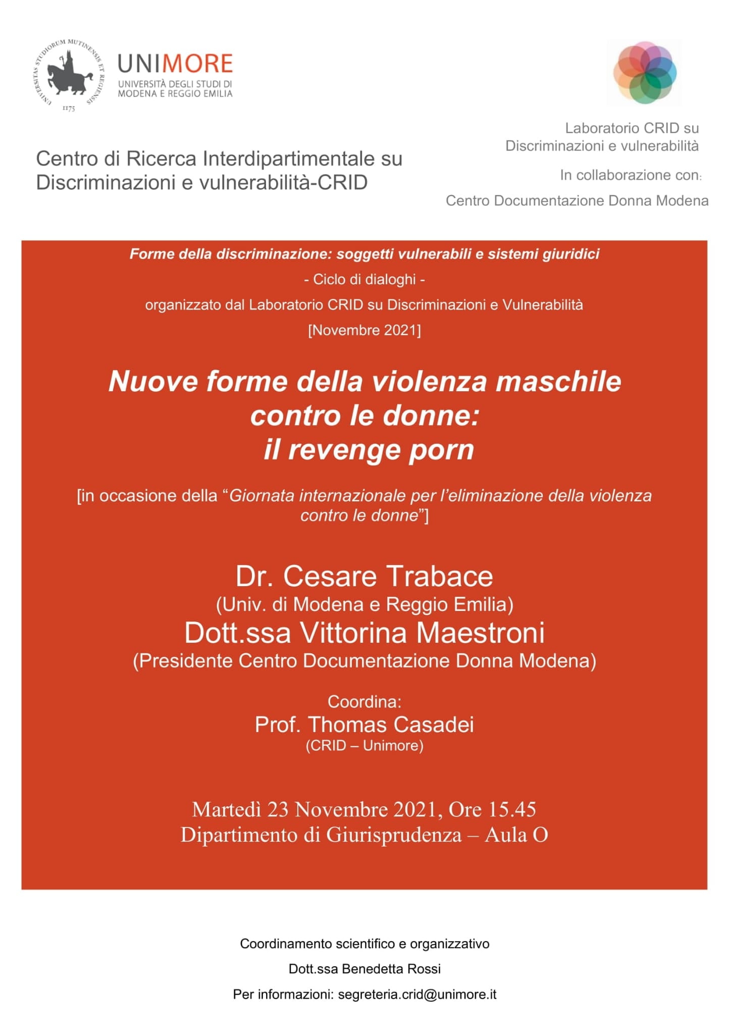 Martedì 23 novembre 2021, ore 17
