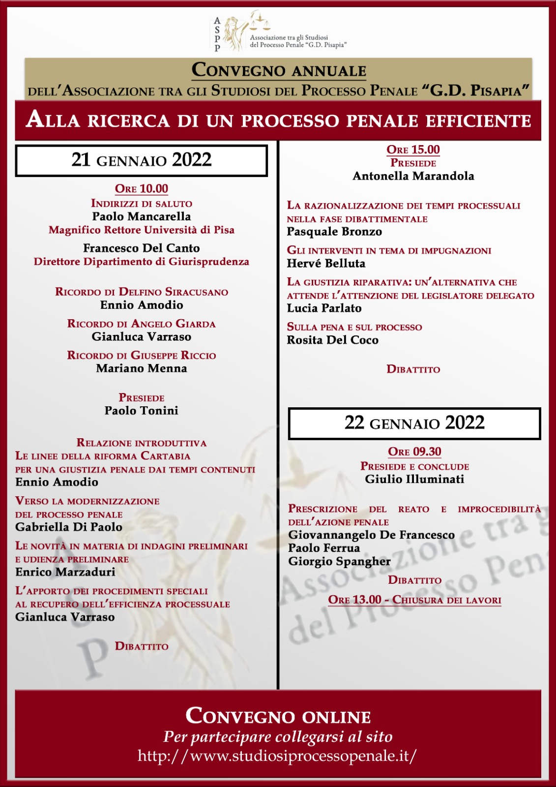 Mercoledì 1 dicembre 2021, ore 15.30-18 - Diritto penale/Diritto processuale penale